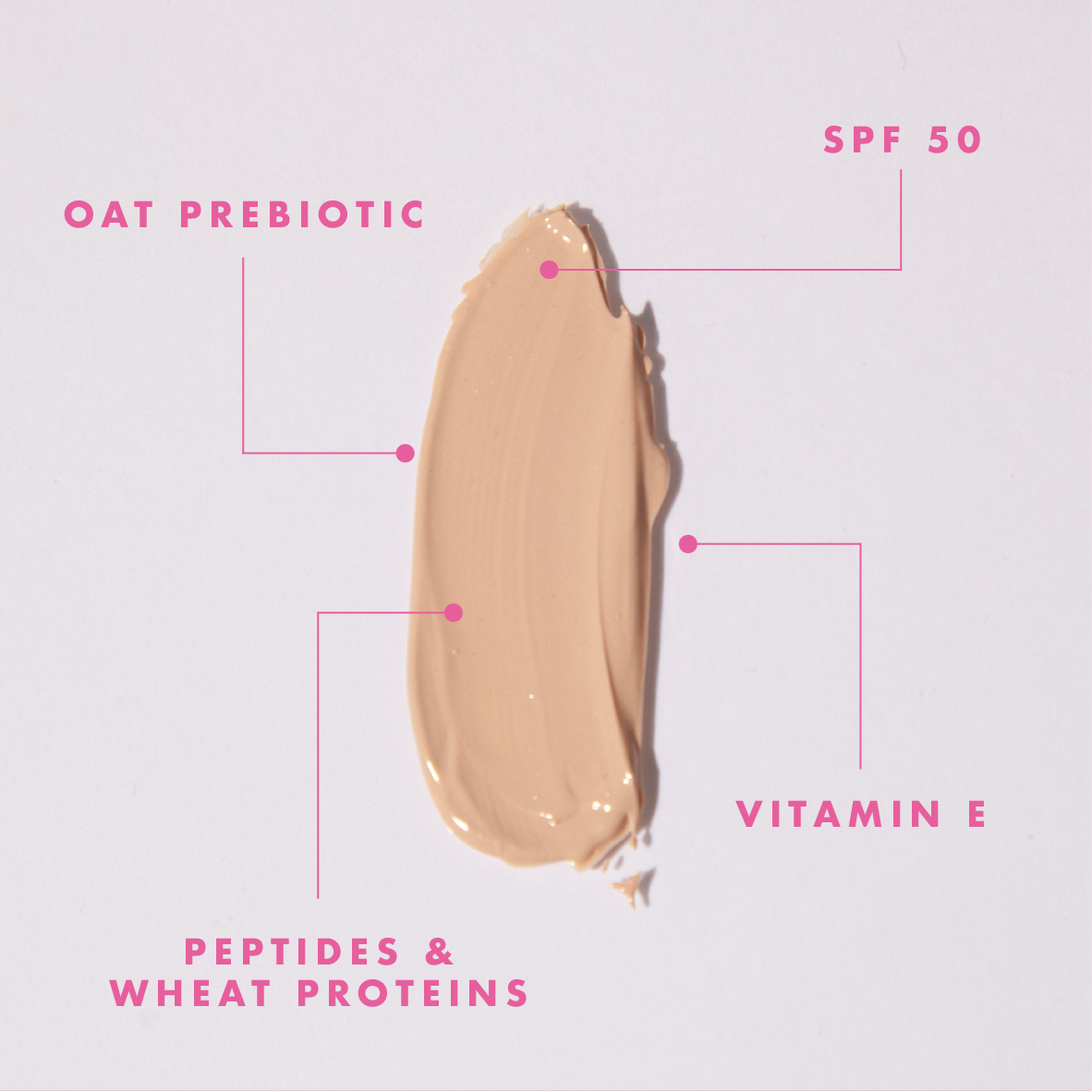 AQUA,ISOAMYL COCOATE,ZINC OXIDE,TITANIUM DIOXIDE,CAPRYLIC/CAPRIC TRIGLYCERIDE,GLYCERIN,PROPANEDIOL,JOJOBA ESTERS,OLIVE OIL POLYGLYCERYL-6 ESTERS,HELIANTHUS ANNUUS SEED WAX,POLYGLYCERYL-6 PENTAOLEATE,MAGNESIUM SULFATE,HYDROGENATED CASTOR OIL,MAGNESIUM STEARATE,SILICA,STEARALKONIUM HECTORITE,POLYGLYCERYL-3 DIISOSTEARATE,POLYGLYCERYL-3 POLYRICINOLEATE,PHENOXYETHANOL,HYDROXYACETOPHENONE,CI 77492,HYDROLYZED WHEAT PROTEIN,CARNOSINE,XANTHAN GUM,ACACIA DECURRENS FLOWER WAX,POLYGLYCERIN-3,PVP,CI 77491,SODIUM HYDROXIDE,ETHYLHEXYLGLYCERIN,CI 77499,AVENA SATIVA KERNEL EXTRACT,LACTOBACILLUS FERMENT,SODIUM BENZOATE,POTASSIUM SORBATE,TOCOPHEROL,ACETYL HEXAPEPTIDE-19,ACETYL HEXAPEPTIDE-31,PALMITOYL HEXAPEPTIDE-32